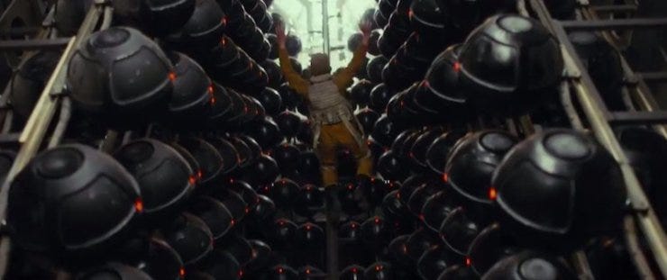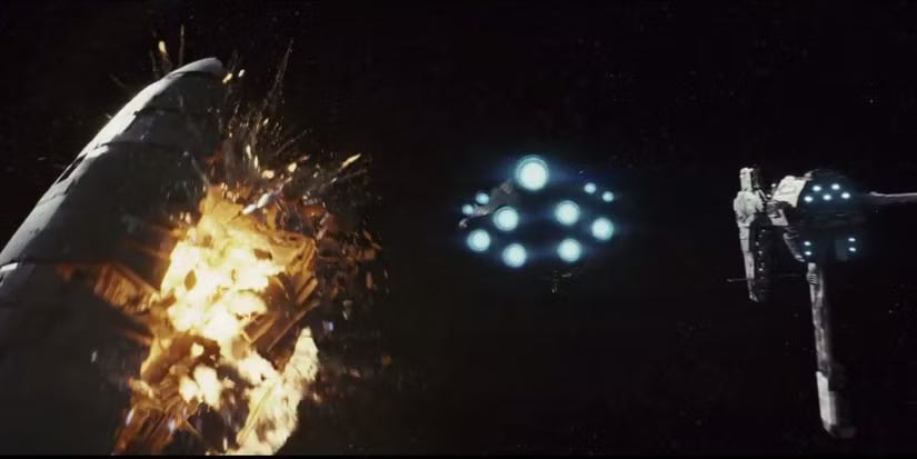 The other reason, naturally, is that these changes to real physics are in the service of what we in the business call The Rule of Cool: visible lasers are way cooler than invisible ones. And while a silent space battle done right can be haunting (see The Expanse again, especially in the early seasons), sound design adds a welcome layer of visceral thrill. Maybe the sounds were added for the benefit of the viewer by whoever’s telling the story in-universe. (Like the Whills—there’s a deep cut for you.)